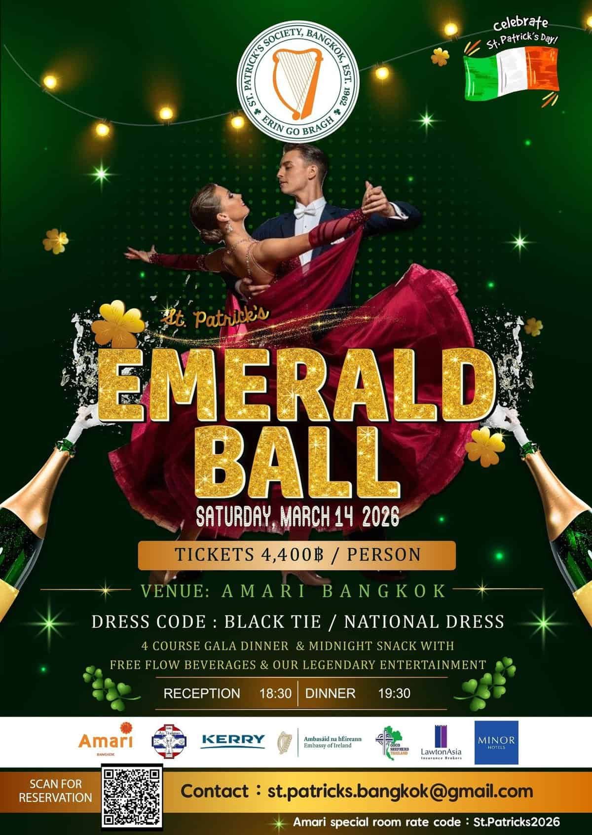 “With March 14th fast approaching, Join us for the St.Patrick’s Society Emerald Ball 2026 at the beautiful Amari Bangkok.