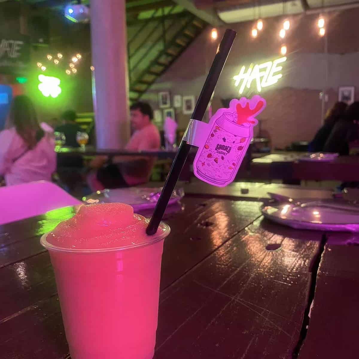 A picture of the man behind the brand, Chote, pouring a slushy beer at O’glee. Interview at O’glee Slushy Party May 5th, 2023.