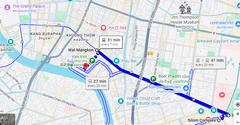 The closest public tranportation is MRT Wat Mangkon, and then a 650m walk southwest towards the Chao Phraya river.
