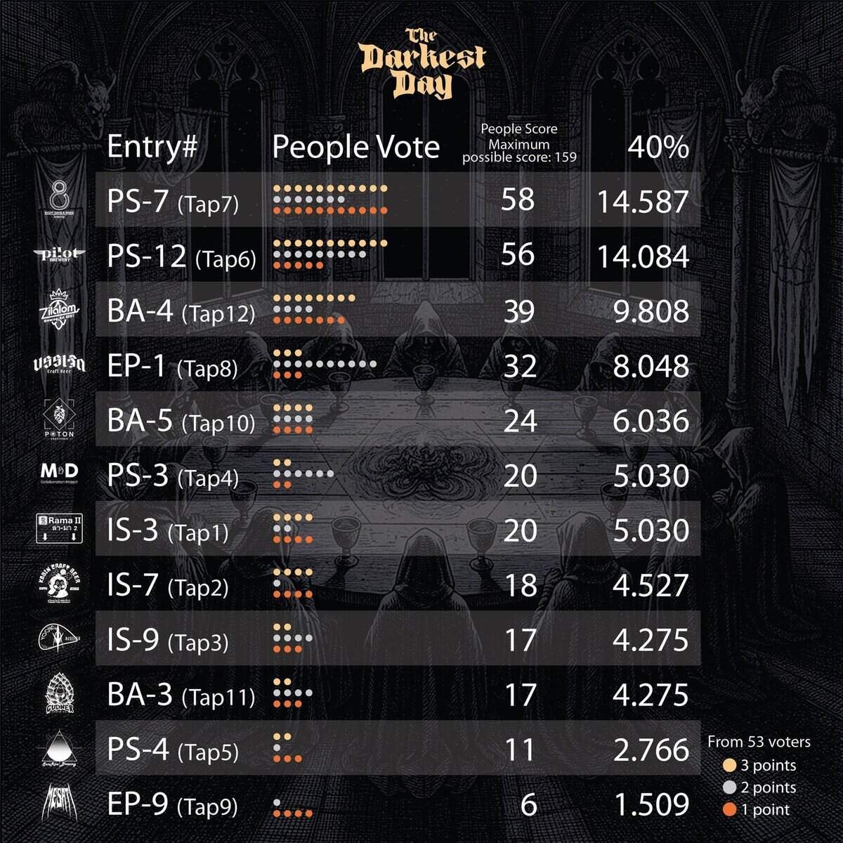 - Dark Guardians, awarded to: Zilalom, Kabin Craft Beer, MD, Rama 2, Poton Craft, The Gudner, Mesati, SunRise Brewing