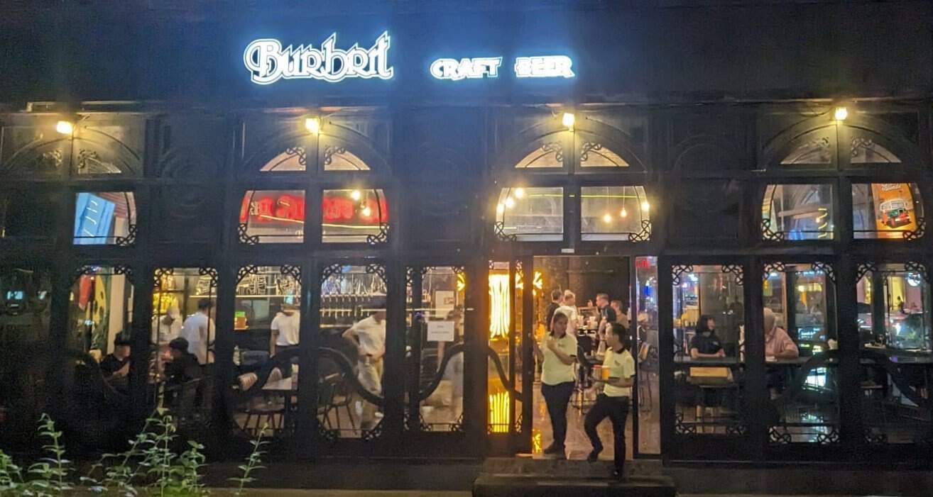 A Burmese + British taproom that has a number of taps, food, and a patio with sports on a large TV screen. On Sukhumvit Rd.