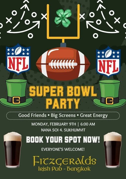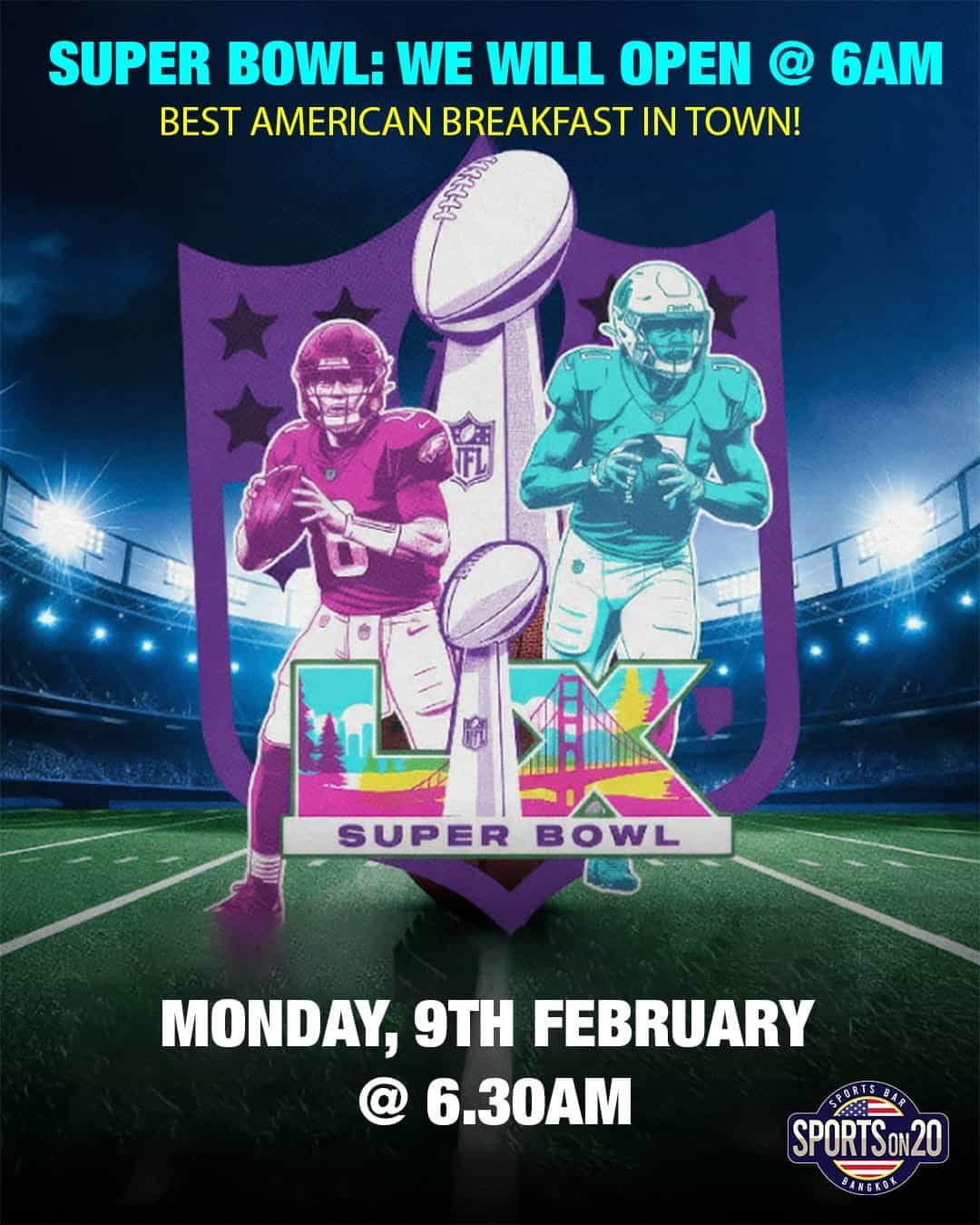 Want to watch the Super Bowl in Bangkok 2026? We will try to keep a list of places to watch “the big game” even though it is an early start on Monday morning.