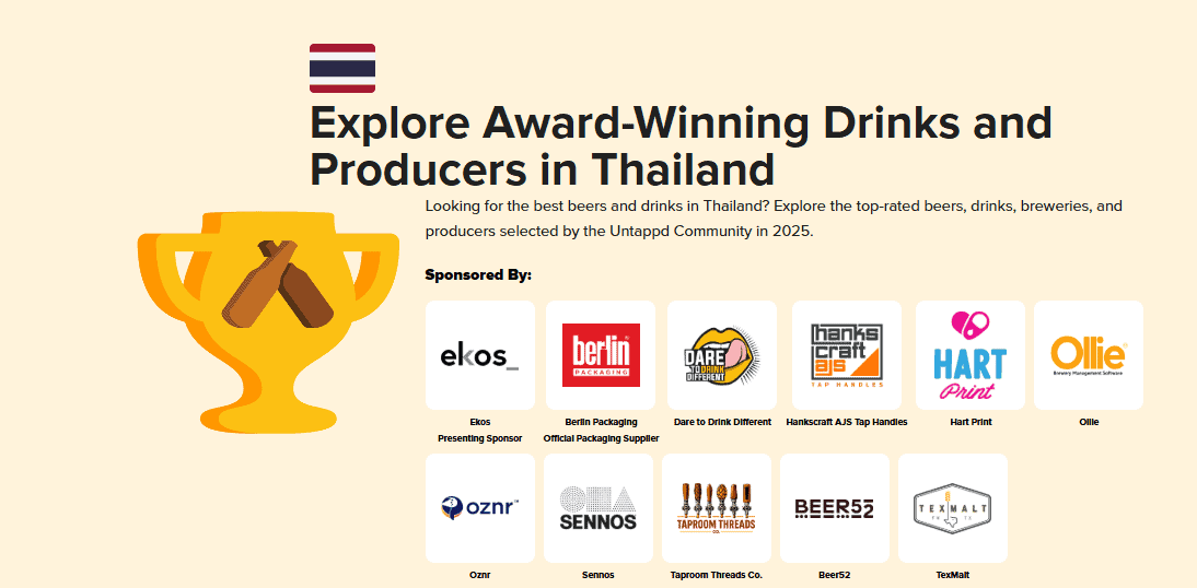 Untappd released its community awards for last year. As there are so many styles of beer, there are so many awards to give. Below is the list of Thailand’s Gold, Silver and Bronze awards on Untappd from 2025.